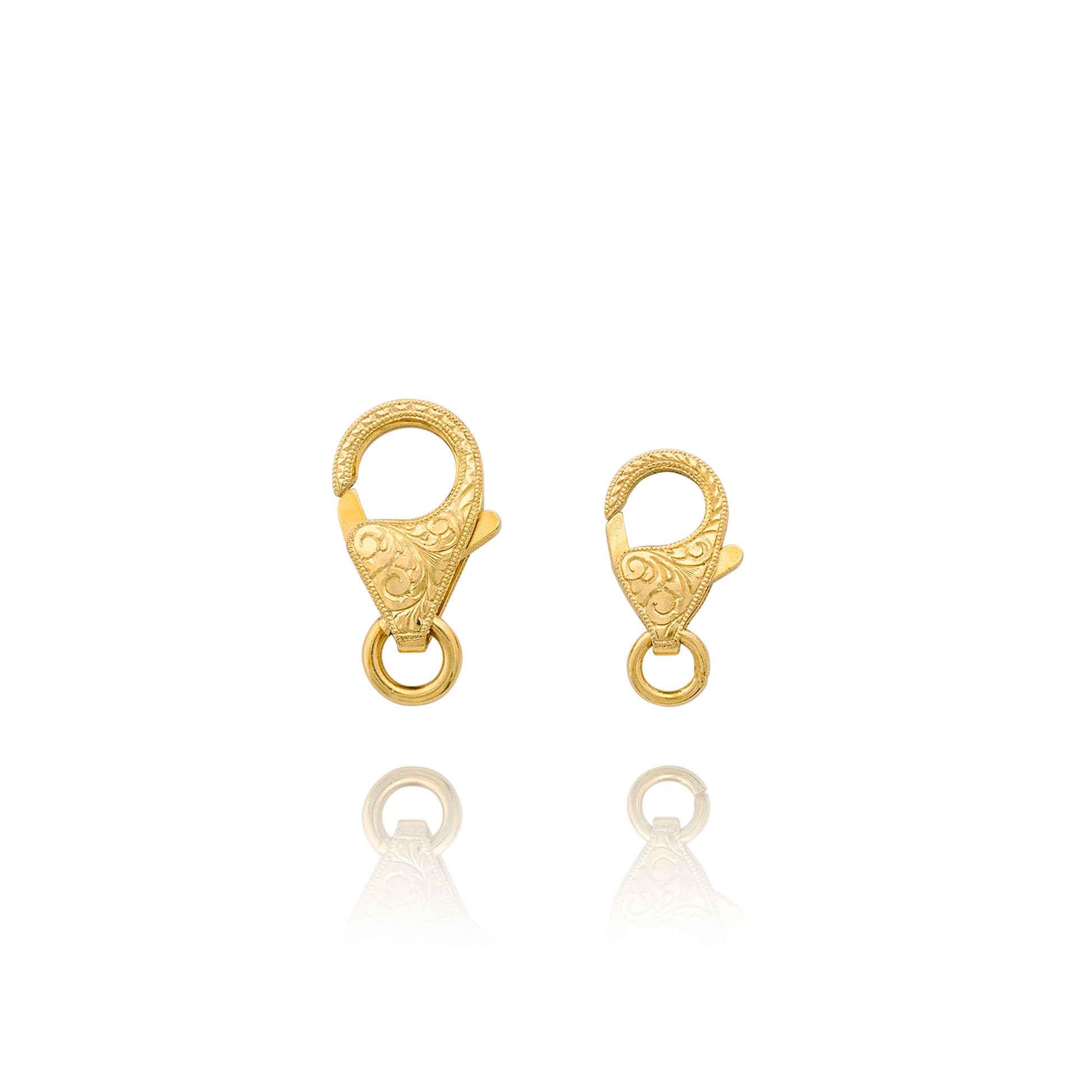14K solid yellow gold lobster clasp, finished with hand engraving. Available in two sizes: approximately 10mm or 14.5mm in length.