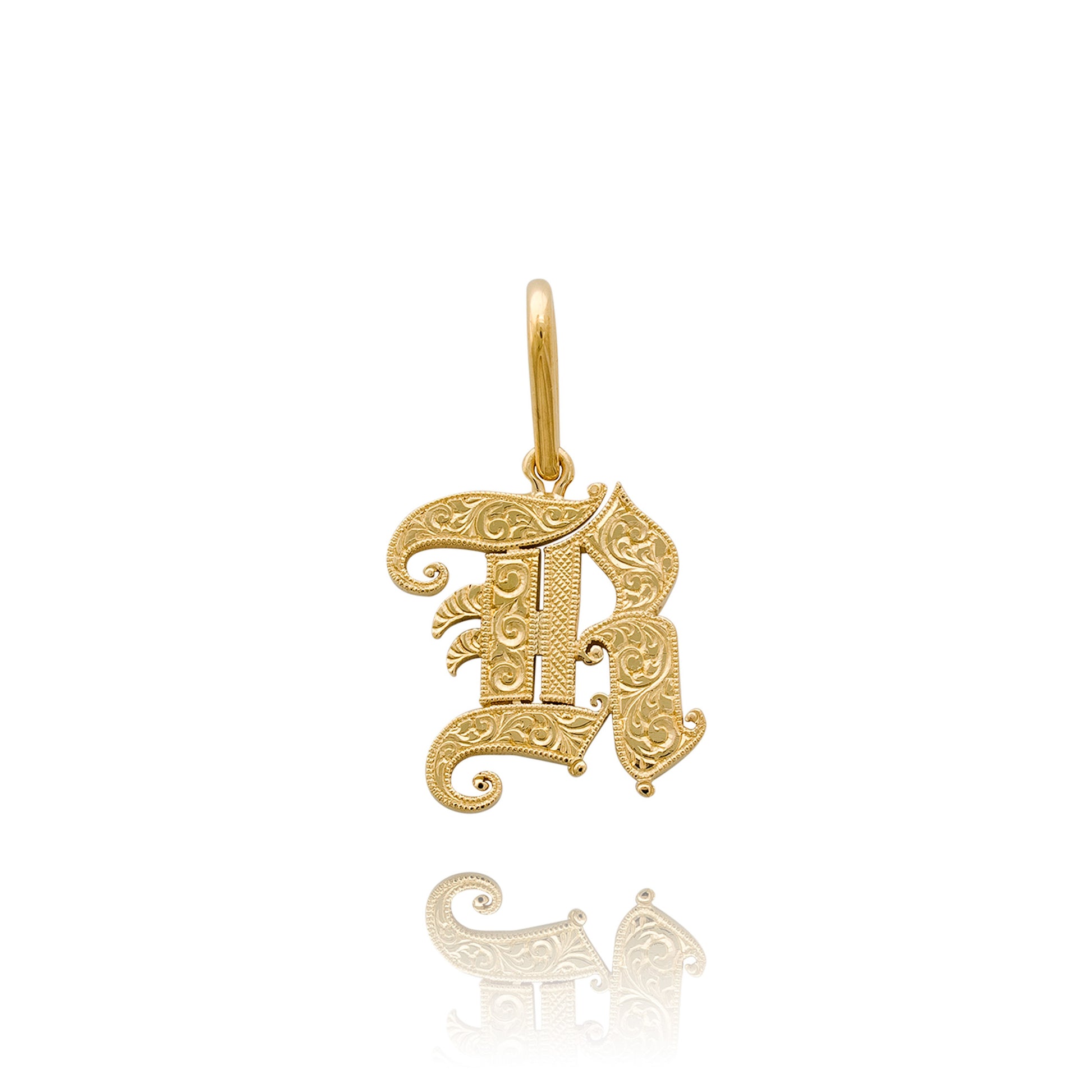 Handcrafted in 14K solid yellow gold, measuring approximately 1 inch in height (including bail). Designed in our signature font and finished with hand engraving. Features a hand-formed wire bail with a 4mm inner diameter